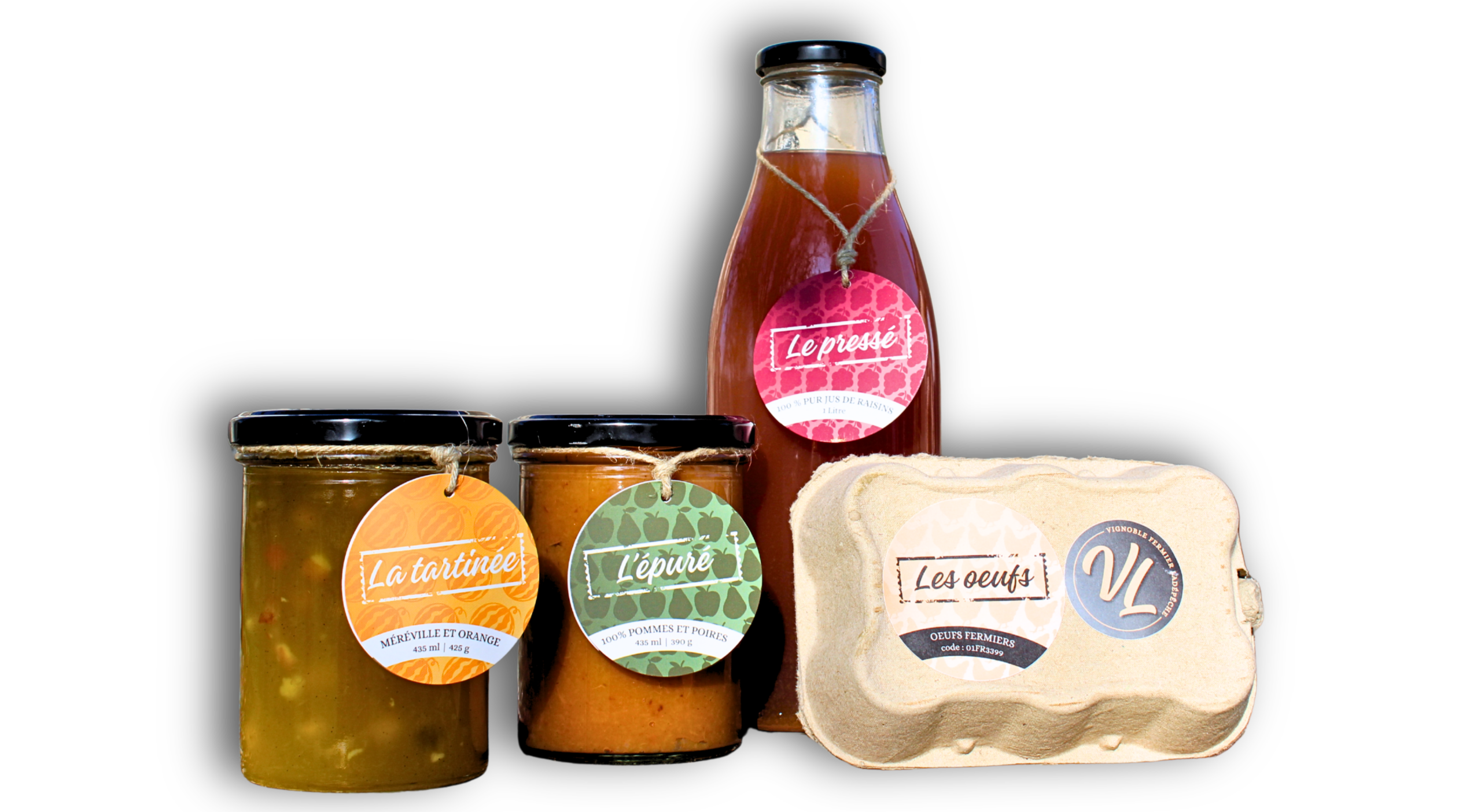 Les formes, pictogrammes et choix graphiques permettent de reconnaître rapidement les différentes catégories (pressé, tartinée, épuré, œufs).