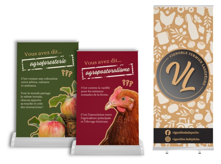 J’ai collaboré avec les Vignobles Ladépêche pour valoriser leur approche durable de l’agriculture : plantations d’arbres fruitiers, fabrication de jus de raisin, mise en place de poulaillers mobiles…