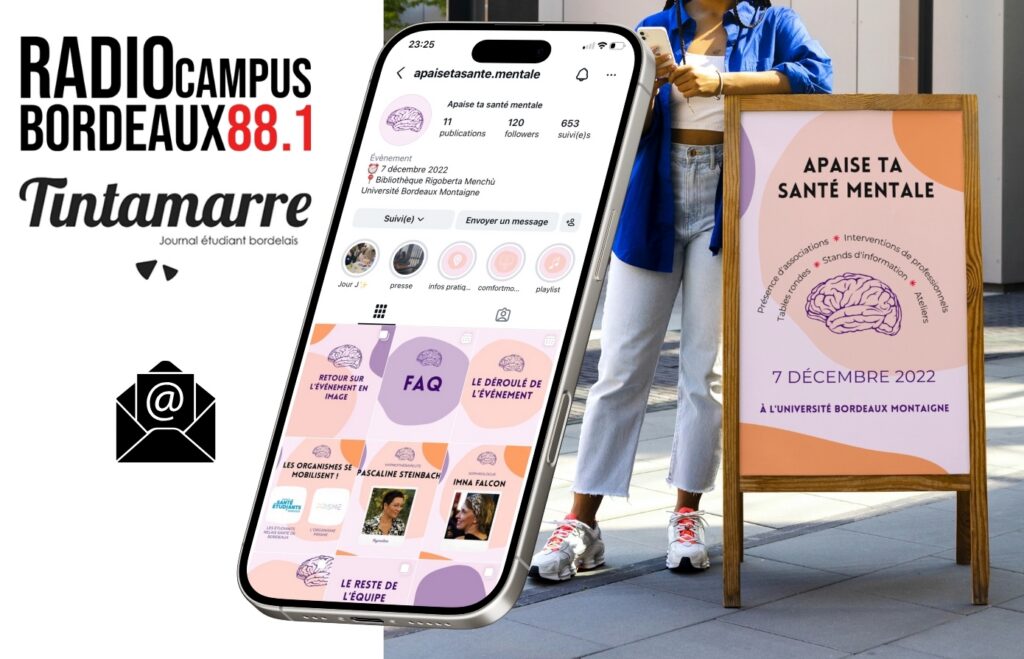 J’ai participé à la conception et à la mise en œuvre d’une stratégie multicanale mêlant affichage sur le campus, mailing à l’ensemble des étudiants, animation d’un compte Instagram dédié et présence dans les médias universitaires (Radio Campus et presse écrite Tintamarre).